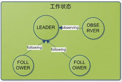 - 学习者(learner,包括跟随者(follower和观察者(observer,follower用于接受客户端请求并向客户端返回结果,在主过程中参与投票Observer可以接受客户端连接,将写请求转发给leader,但observer不参加投票过程,只同步leader的状态,observer的目的是为了扩展系统,提高读取速度