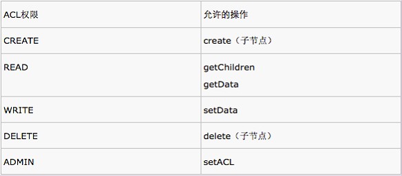 每个znode被创建时都会带一个ACL列表,用于决定谁可以对它执行何种操作