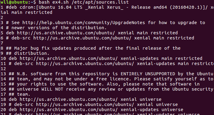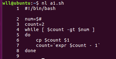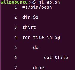 line17-line21功能为将参数读入函数NL中,shift 命令将参数左移一位,最左边的参数丢弃。