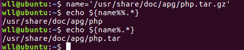 ${name%%.pattern} 和${name%.pattern}中如果pattern与name值末尾匹配,那么name值中去掉匹配部分后就是表达式的值,否则该表达式的值就是name的值