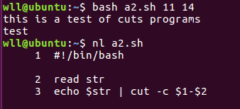 (3)设计一个程序cuts,它由标准输入读取数据,获取由第一个参数n和第二个参数m所限定范围的数据,n和m都是整数,即从输入的字符串中抽取第n个字符至第m个字符之间的所有字符(包括这两个字符)。例如: