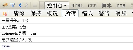 console.log("HTC是第:"+HTC.index+"台"); //FF的控制台输出HTC手机对象是第几台创建的,即索引;