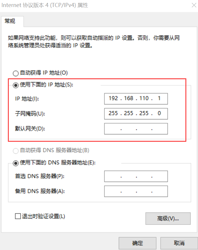 (3)找到VMnet1,右键-属性-Internet 协议版本4(TCP/IPv4),双击。选择使用下面的IP地址:IP地址为192.168.110.0,子网掩码为255.255.255.0