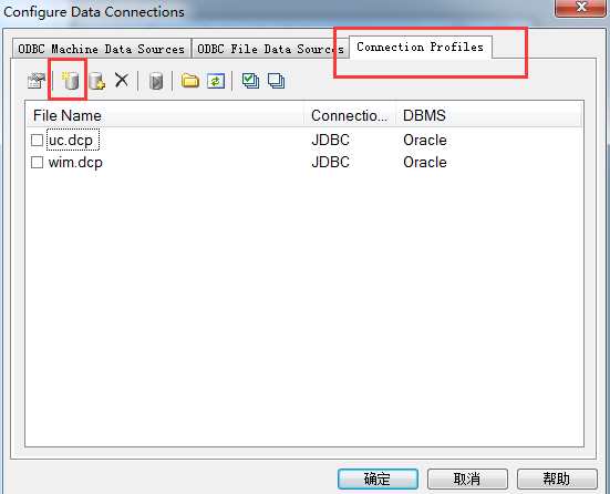 5,新窗口Configure Data Connections打开后,点击Connection Profiles,选择下面图标的第二个