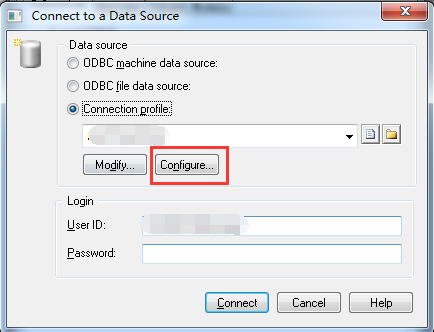 4,新窗口Connect to a Data Source打开后,点击Configure