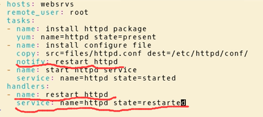 (1)某任务的状态在运行后为changed时,可通过"notify"通知给相应的handlers;