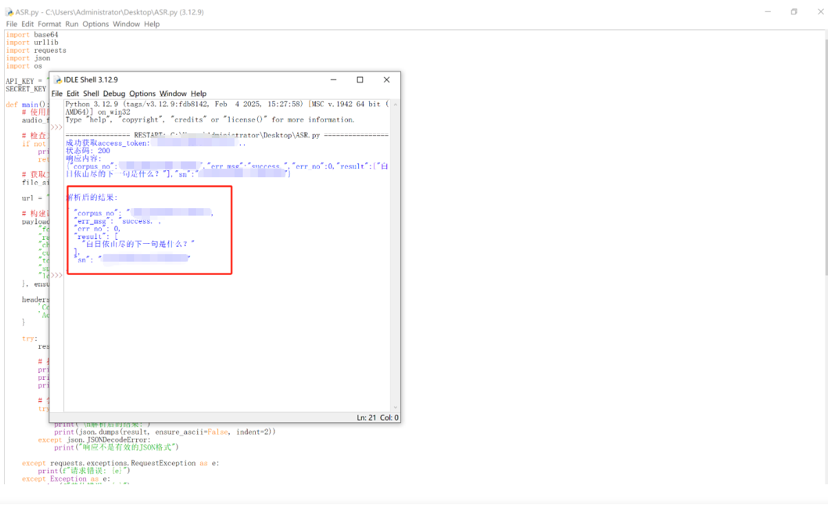 使用百度语音识别API(REST API)将WAV音频文件转换为文字的Python脚本