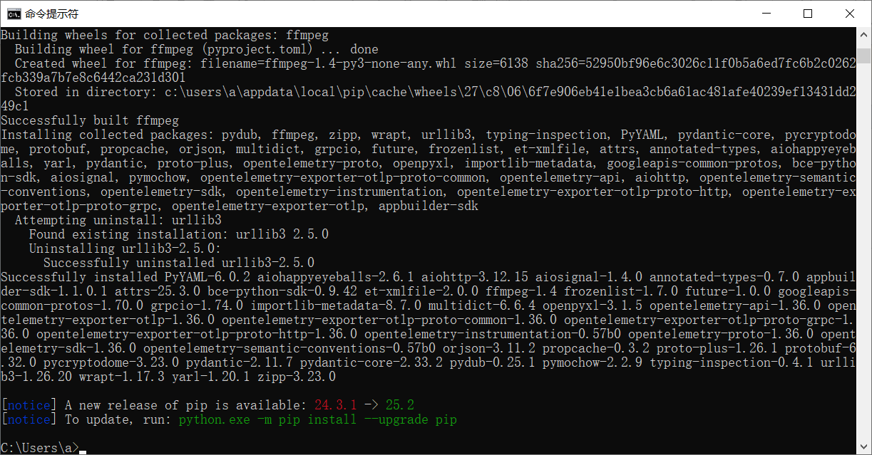 # 执行如下命令,快速安装Python语言的最新版本AppBuilder-SDK(要求Python >= 3.9):