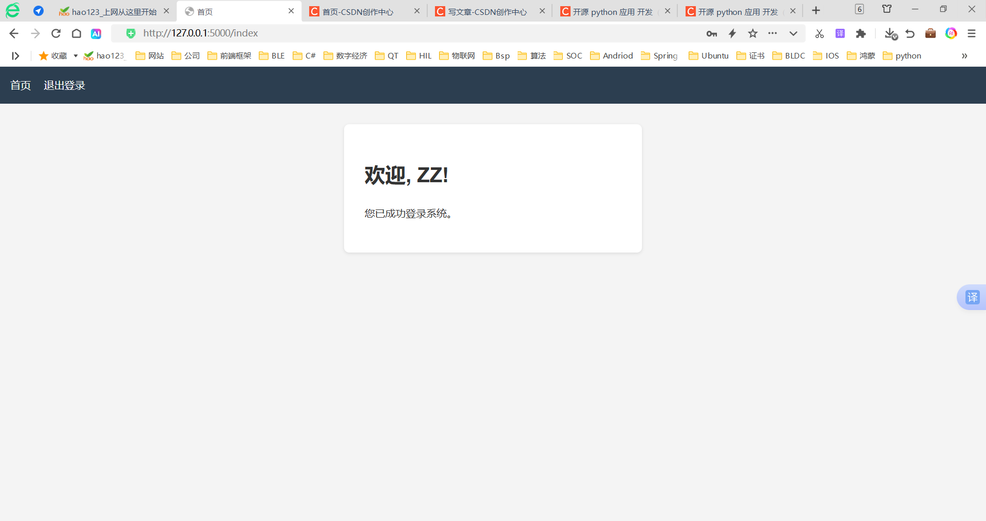 双击app.py,输入http://127.0.0.1:5000/,显示如下