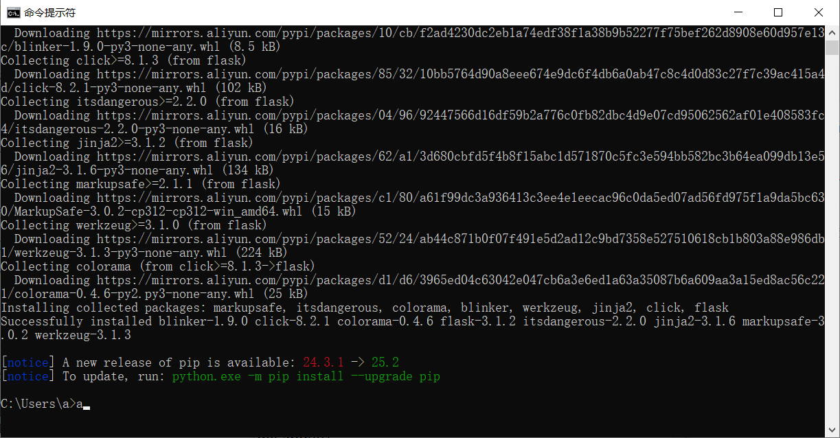 pip install flask -i https://mirrors.aliyun.com/pypi/simple/