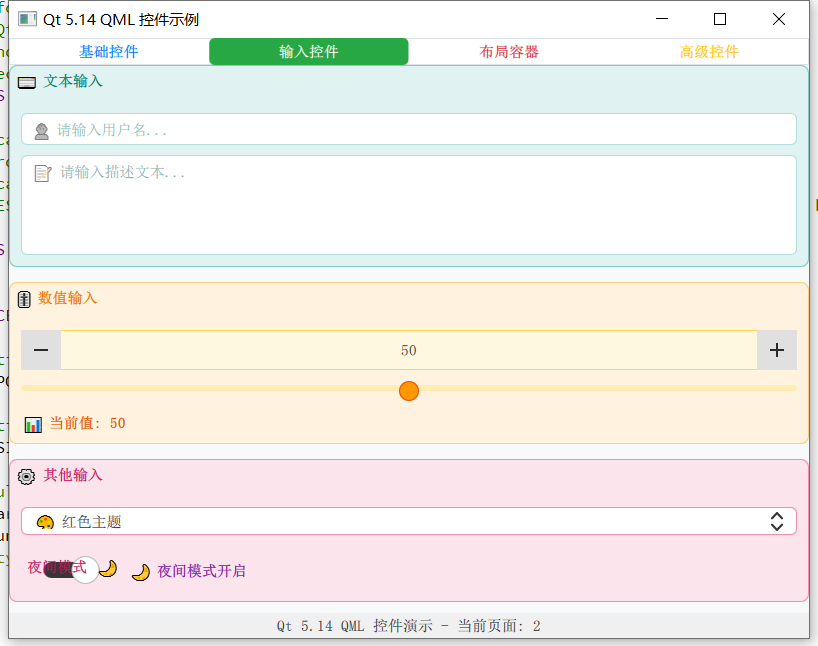 text: "Qt 5.14 QML 控件演示 - 当前页面: " + (tabBar.currentIndex + 1)