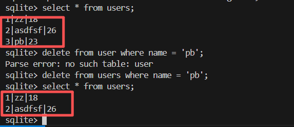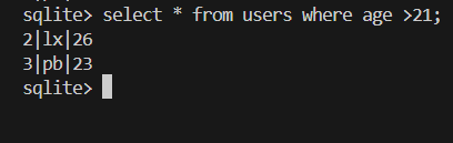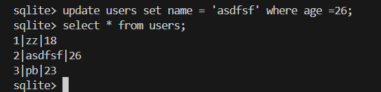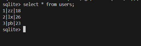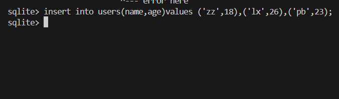 insert into users(name,age)values ('zz',18),('lx',26),('pb',23);