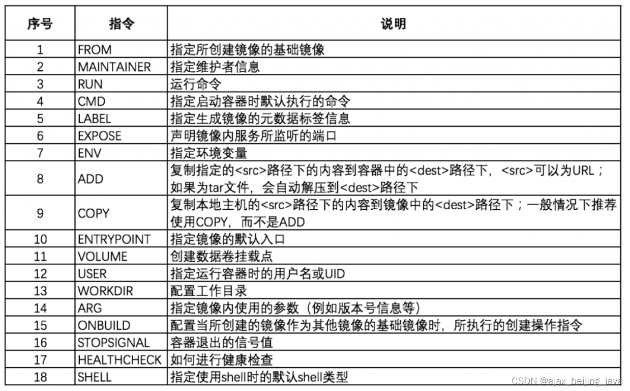 Dockerfile由一行一行的命令语句组成,#开头的为注释行。Dockerfile文件内容分为四个部分:基础镜像信息、维护者信息、镜像操作指令以及容器启动执行指令。