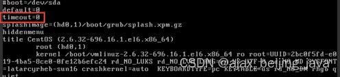 打开文件“/boot/grub2/grub.cfg”,并修改等待时间“timeout=0”。