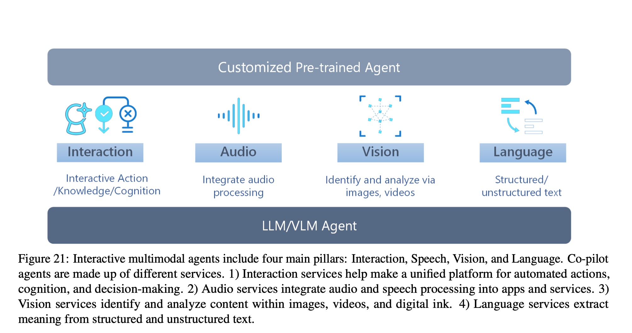 - Application of foundation models: the development of agents with integrated modalities (audio, image, text, sensor inputs), aiming to enhance their recognition and response capabilities for a wide variety of applications.