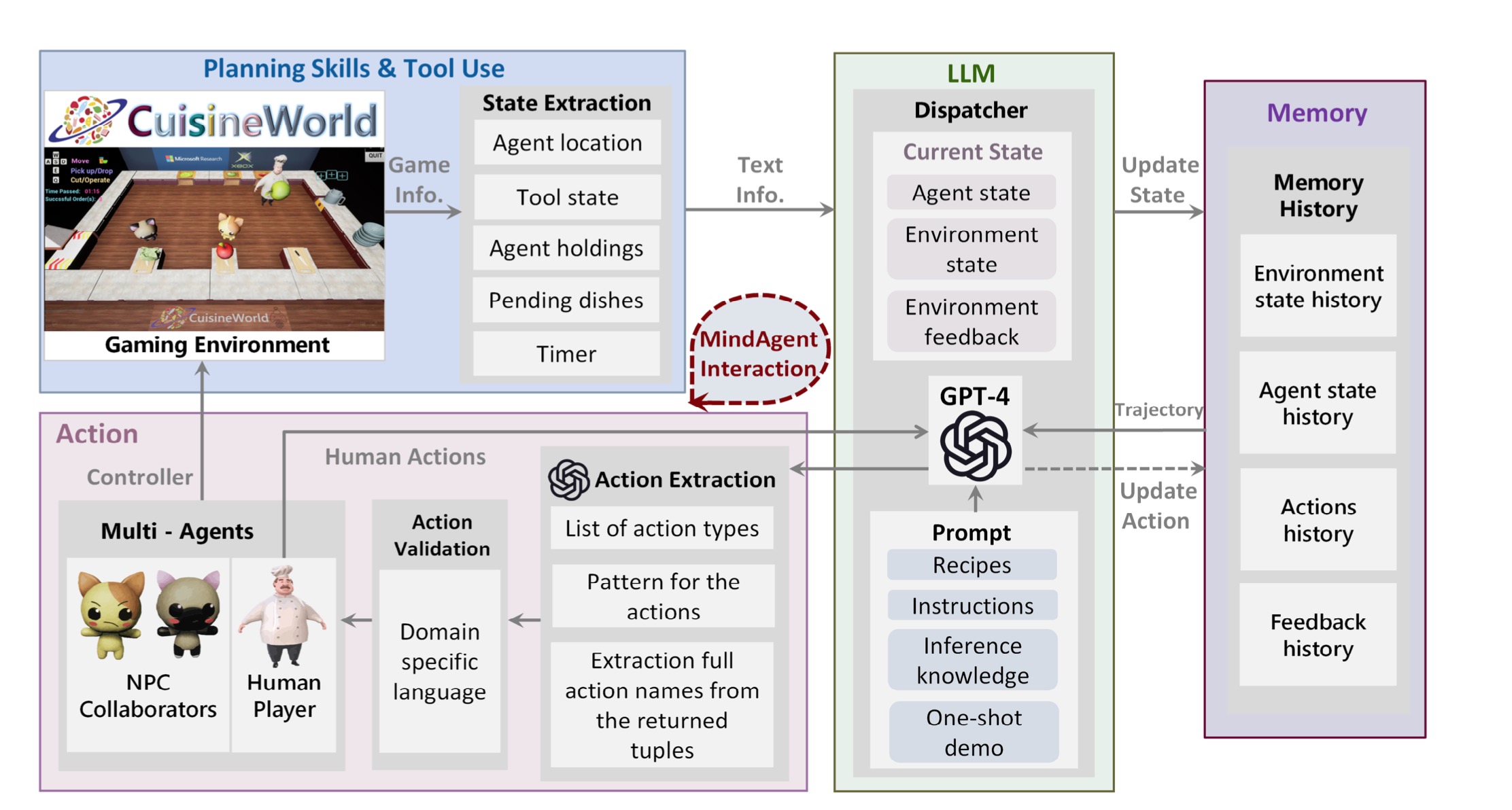• We provide a dataset and related the benchmark, called Microsoft MindAgent and and correspondingly release a dataset “CuisineWorld” to the to the research community.