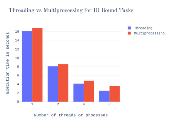 - 对于计算密集型的任务,多个进程的性能要比多个线程的性能要好得多。然而,当我们使用 8x 并行化时,这种差异就变得不那么明显了。由于我的笔记本的 CPU 是四核的,因此最多可以有四个进程有效地使用多个内核。因此,当我使用更多进程时,它就不能很好地进行扩展。但是,它的性能仍然比线程要好很多,因为线程根本就不能利用多核。