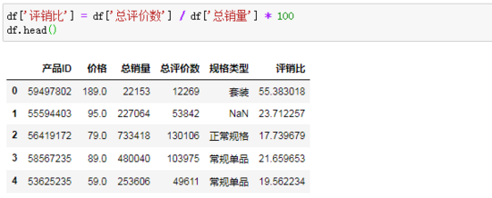 评销比 = 单款产品总评论数 / 单款产品总销量 * 100, 以此来衡量平均每卖出100单位的产品,对应着多少条评价。