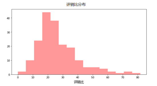 看看评销比分布形态,数据在20左右分散开来,略微偏右: