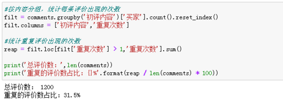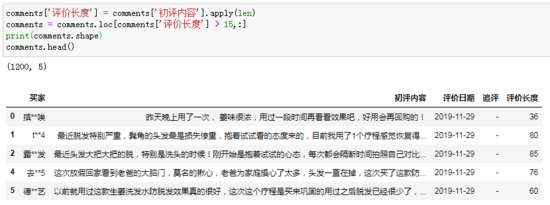 so,我们在用重复度鉴别时,可以先预设一个评论长度作为筛选标准,比如只对超过15个字的评论进行重复度匹配: