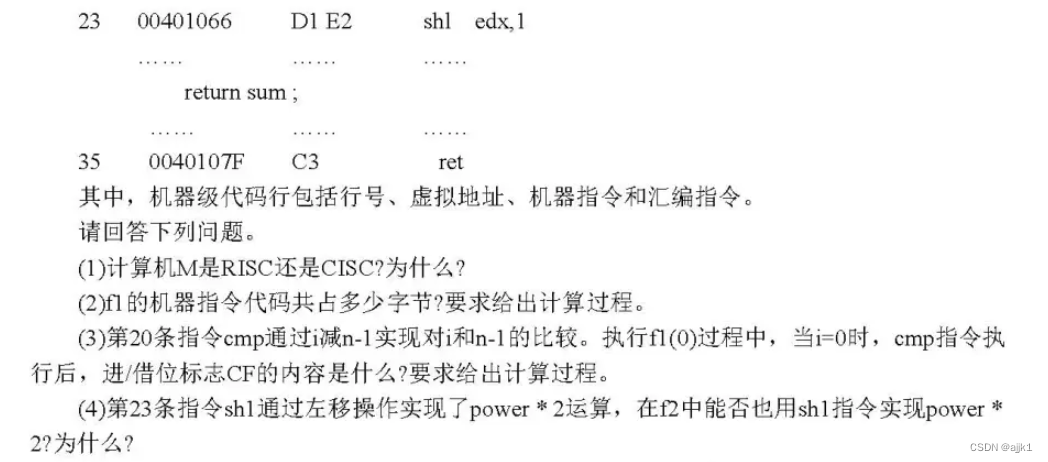 (1) 计算机M是CISC的,因为指令码长度是不定长的。