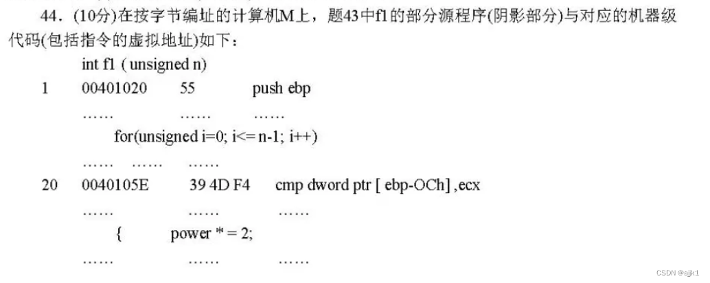 (2) 按字节编址,指令占用的地址空间为00401020H-0040107FH,107FH-1020H+1H=5FH+1H=60H,一共占用6*16B=96B。