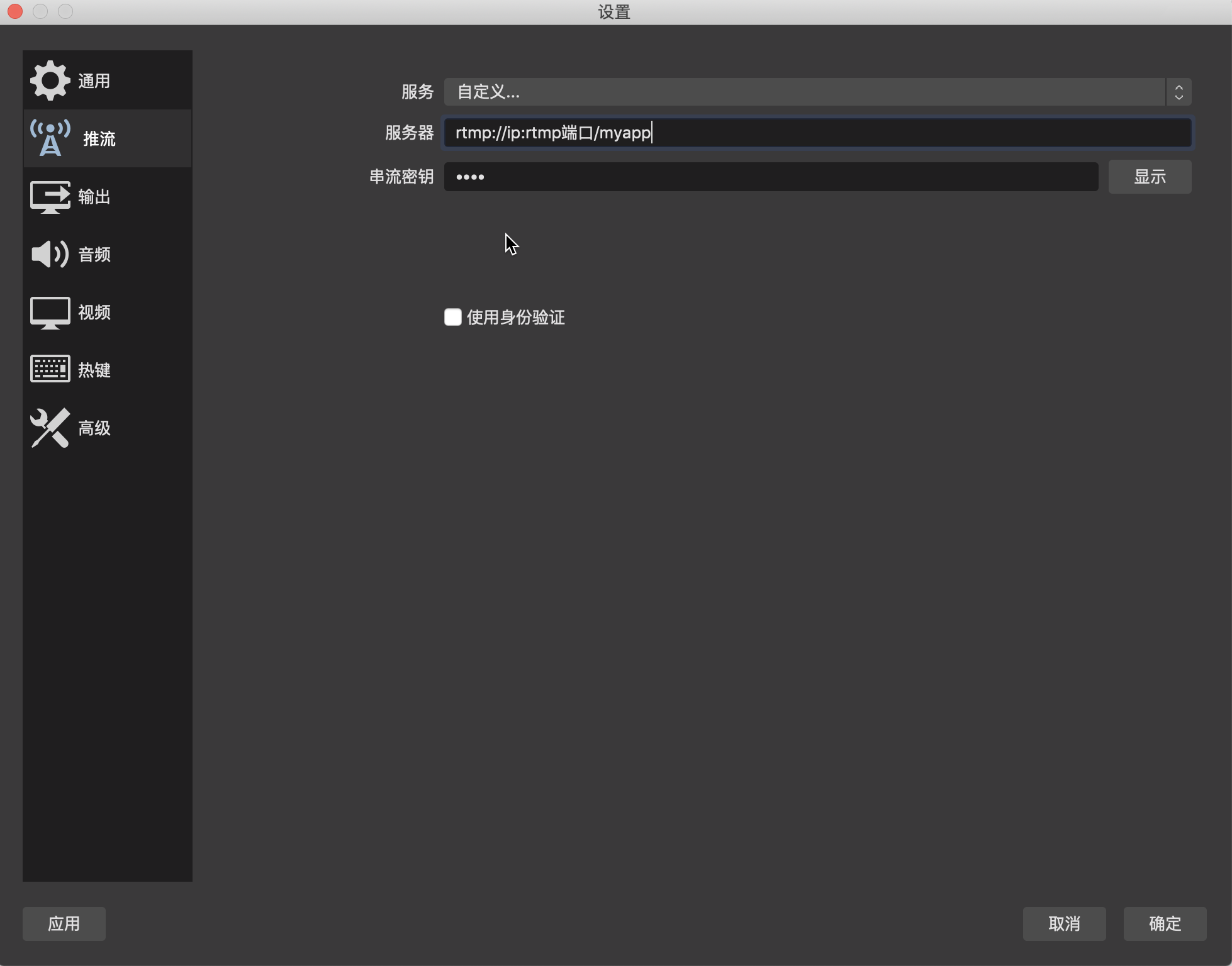 我们直接用开源 obs-studio 软件进行推流,听说很多游戏主播也用该款推流软件。