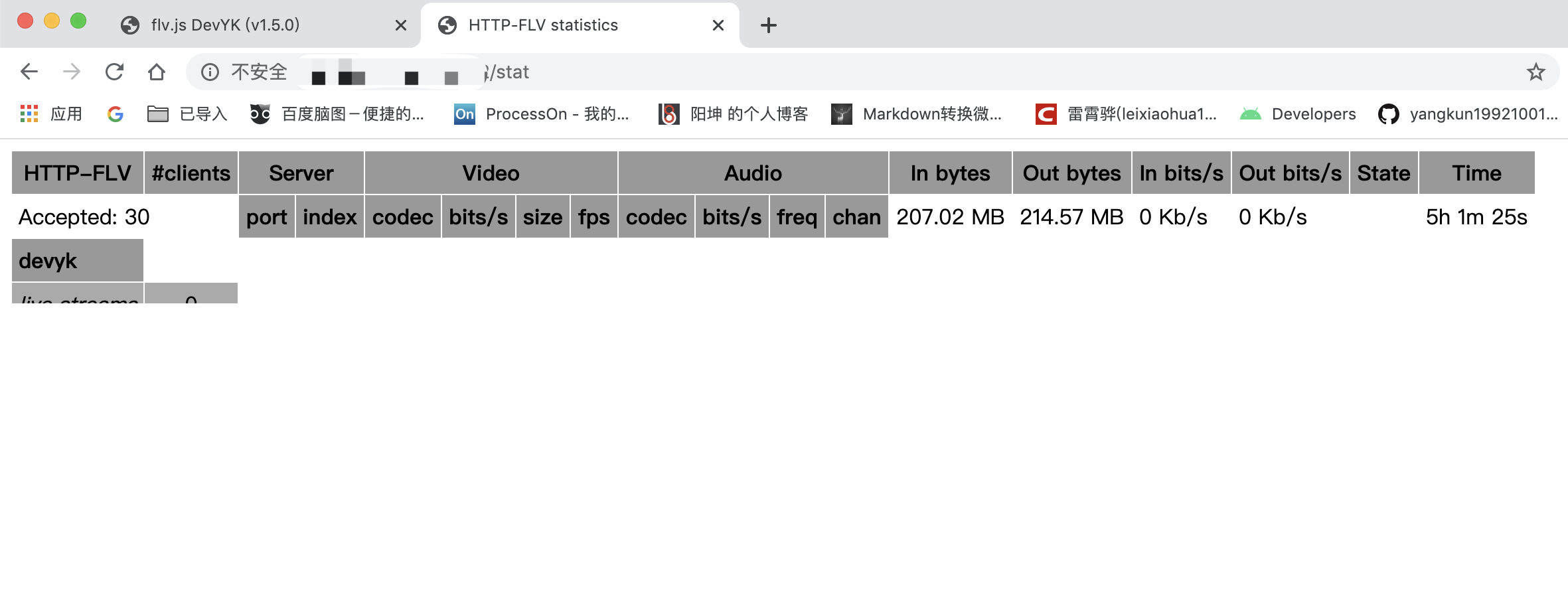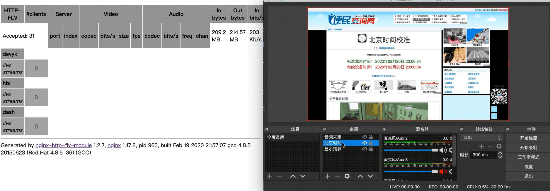 本来之前我是借助 nginx-rtmp-module 来搭建的直播服务器(已成功),奈何它好像不支持 Http-flv 协议,所以替换成了 nginx-http-flv-module 模块,它是基于 nginx-rtmp-module 模块二次开发的,所以完美的继承了 rtmp 模块的所有功能。