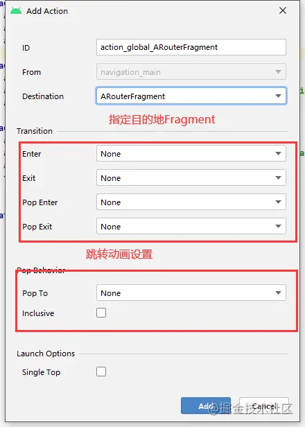 这个值指向xml文件,在xml文件中我们可以定义fragment,跳转行为,目的地等。