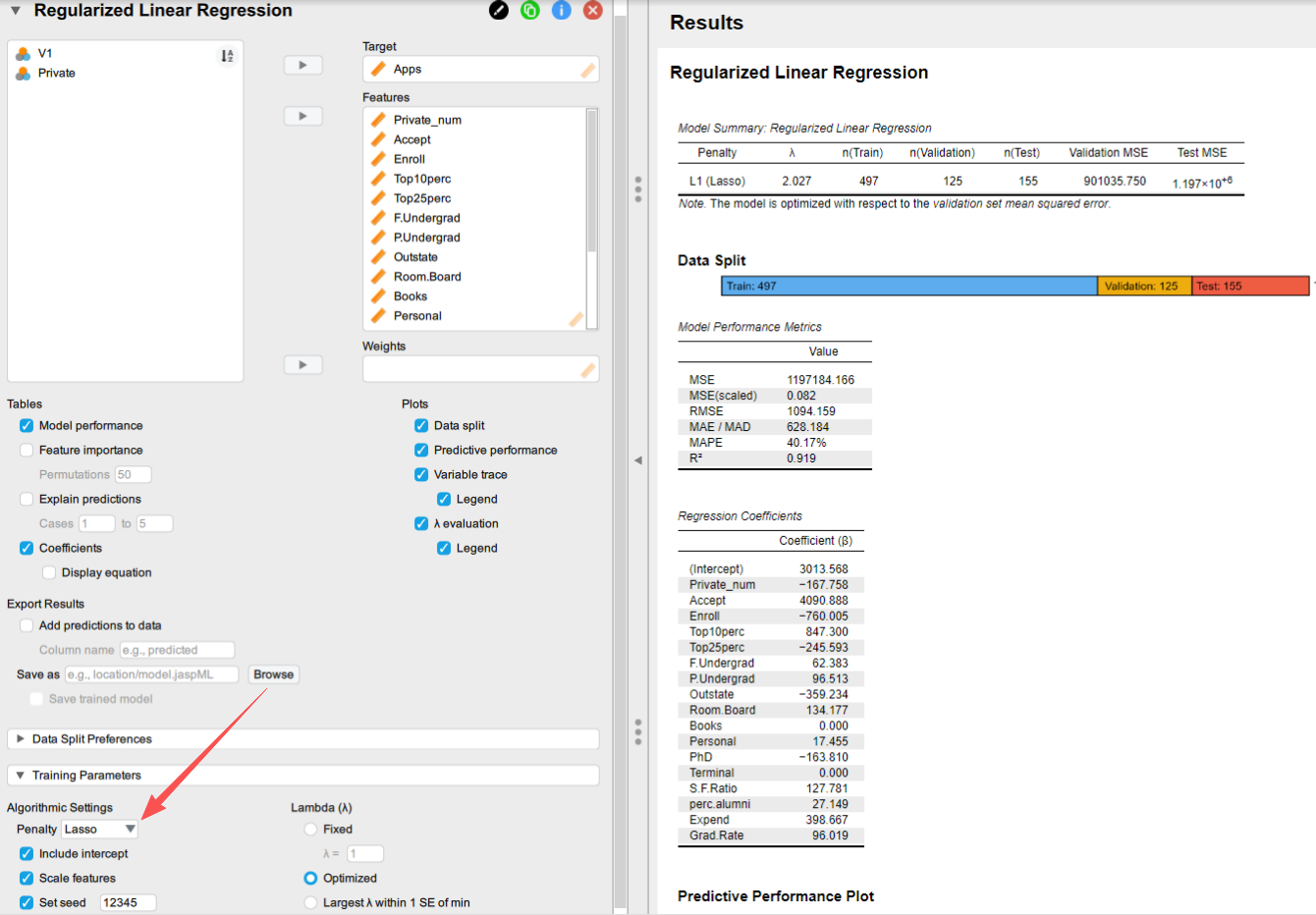 步骤和7.1一样。最后一步修改的参数不一致。按下图所示,选择‘Lasso’即可。