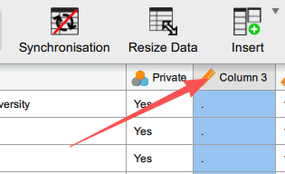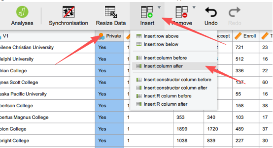 选择“Private”列,点击“Insert”,选择“Insert column after”。