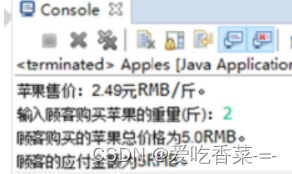 System.out.println("顾客购买的苹果总价格为"+d+"RMB。");//输出信息