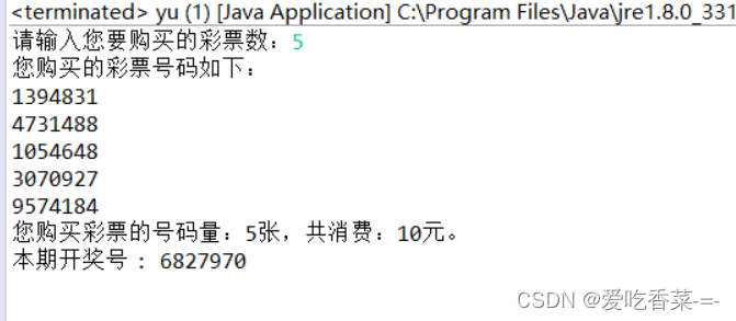 System.out.println(randNum); // 输出随机生成的彩票号码