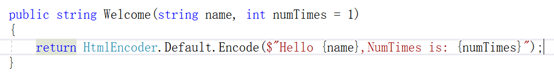 2.使用 HtmlEncoder.Default.Encode 防止恶意输入(即 JavaScript)损害应用。