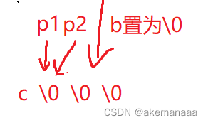 此时执行*(p + strlen(p) - 1) = b,就是将第一个字符b换成a;所以字符串变成了:a \0 \0 \0