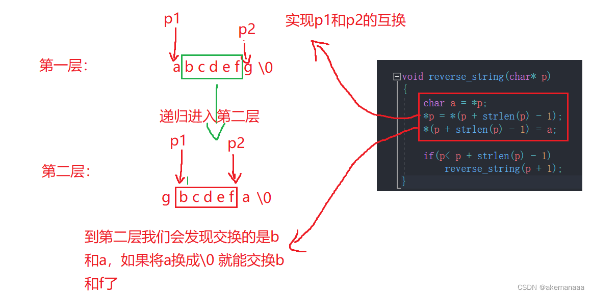只需要将strlen(p)提前存起来,之后就不会在递归完毕回归时因为字符被赋为\0而改变strlen(p)的大小;