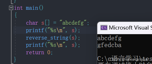 假设这是需要逆序的字符串。将a的地址传进函数。