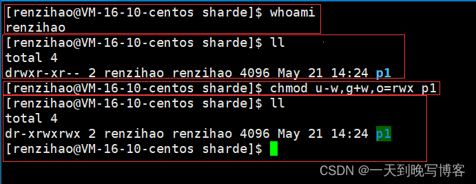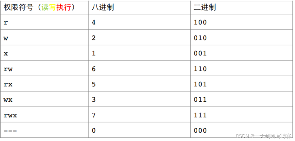 - w/写:Write对文件而言,具有修改文件内容的权限;对目录来说具有删除移动目录内文件的权限