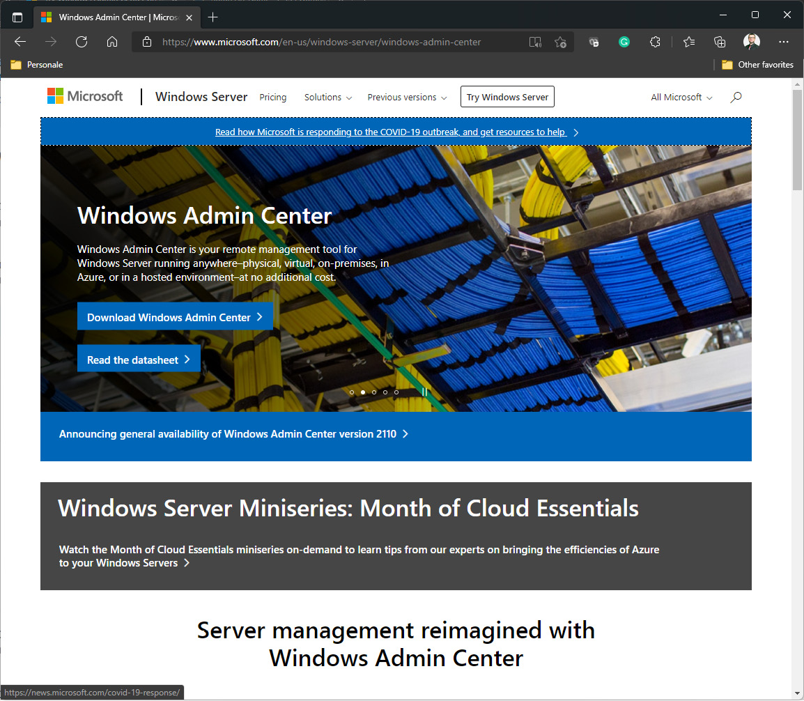 - 打开 Microsoft Edge 并访问 https://www.microsoft.com/en-us/cloud-platform/windows-admin-center .