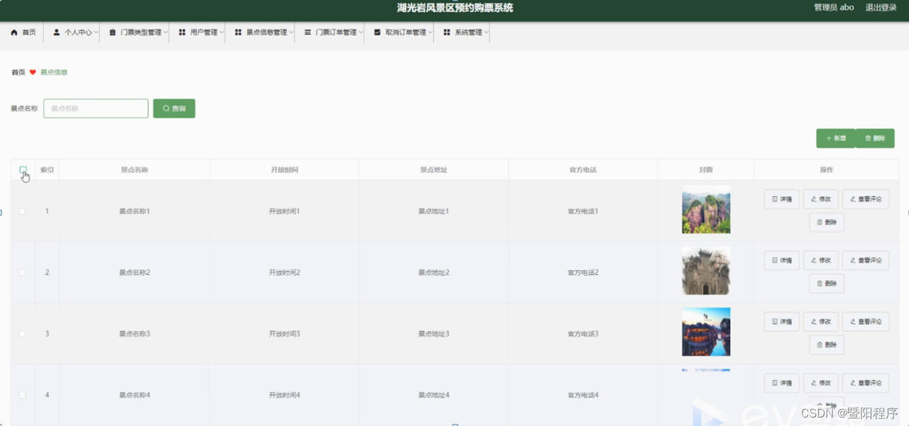 后台主要是管理员,管理员功能包括首页,个人中心,门票类型管理,景点信息管理,门票订单管理,取消订单管理,系统管理等;