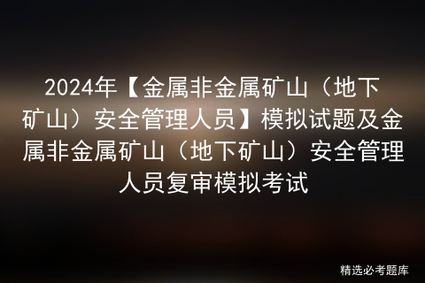 金属非金属矿山(地下矿山)安全管理人员模拟试题根据新金属非金属矿山(地下矿山)安全管理人员考试大纲要求,安全生产模拟考试一点通将金属非金属矿山(地下矿山)安全管理人员模拟考试试题进行汇编,组成一套金属非金属矿山(地下矿山)安全管理人员全真模拟考试试题,学员可通过金属非金属矿山(地下矿山)安全管理人员复审模拟考试全真模拟,进行金属非金属矿山(地下矿山)安全管理人员自测。