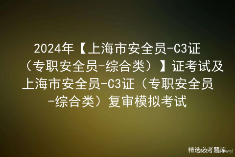 上海市安全员-C3证(专职安全员-综合类)证考试是安全生产模拟考试一点通生成的,上海市安全员-C3证(专职安全员-综合类)证模拟考试题库是根据上海市安全员-C3证(专职安全员-综合类)最新版教材汇编出上海市安全员-C3证(专职安全员-综合类)仿真模拟考试。2024年【上海市安全员-C3证(专职安全员-综合类)】证考试及上海市安全员-C3证(专职安全员-综合类)复审模拟考试
