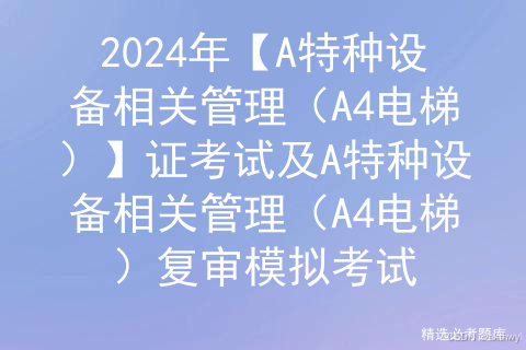 A特种设备相关管理(A4电梯)证考试根据新A特种设备相关管理(A4电梯)考试大纲要求,安全生产模拟考试一点通将A特种设备相关管理(A4电梯)模拟考试试题进行汇编,组成一套A特种设备相关管理(A4电梯)全真模拟考试试题,学员可通过A特种设备相关管理(A4电梯)复审模拟考试全真模拟,进行A特种设备相关管理(A4电梯)自测。