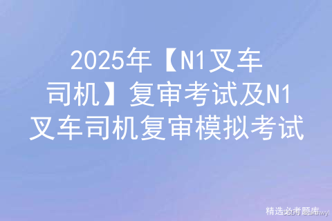 N1叉车司机考试题根据新N1叉车司机考试大纲要求,安全生产模拟考试一点通将N1叉车司机模拟考试试题进行汇编,组成一套N1叉车司机全真模拟考试试题,学员可通过N1叉车司机考试技巧全真模拟,进行N1叉车司机自测。