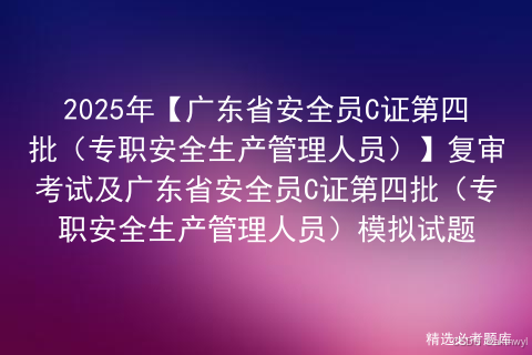 广东省安全员C证第四批(专职安全生产管理人员)复审考试根据新广东省安全员C证第四批(专职安全生产管理人员)考试大纲要求,安全生产模拟考试一点通将广东省安全员C证第四批(专职安全生产管理人员)模拟考试试题进行汇编,组成一套广东省安全员C证第四批(专职安全生产管理人员)全真模拟考试试题,学员可通过广东省安全员C证第四批(专职安全生产管理人员)模拟试题全真模拟,进行广东省安全员C证第四批(专职安全生产管理人员)自测。
