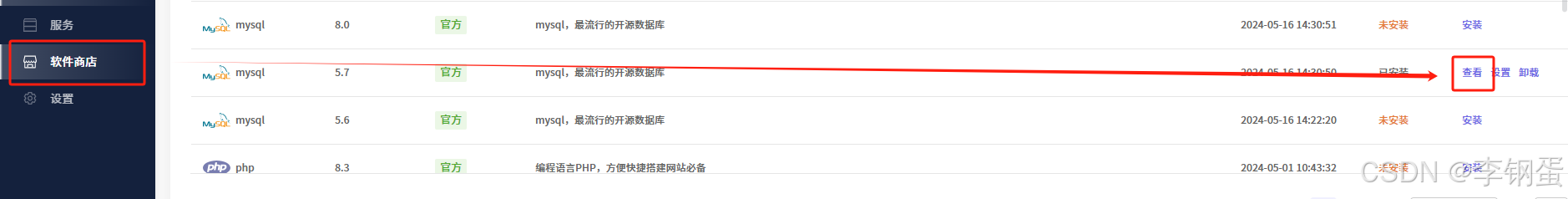 2、确认列出的路径中有正确的可执行的程序。上图椭圆圈着的是博主的安装路径,小皮系统的可以在软件商店,mysql那里查看,如下图所示: