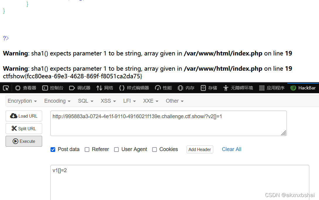 可以利用parse_str() 函数的特点将v2[‘flag’]的值覆盖