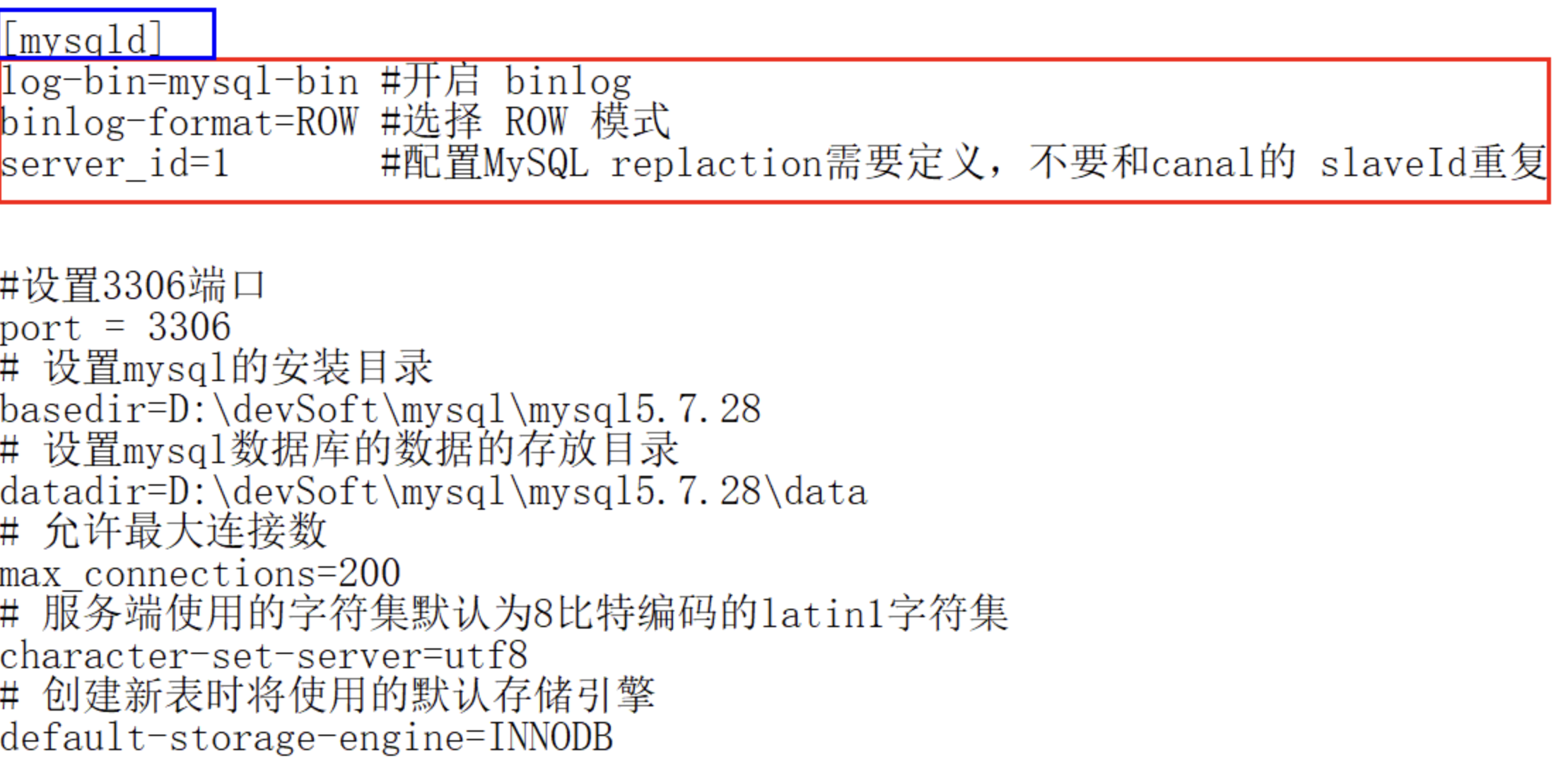开启MySQL的binlog写入功能(Windows下的my.ini配置文件,Linux下的my.cnf配置文件)