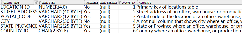 - DEPARTMENTS的LOCATION_ID和LOCATIONS的LOCATION_ID