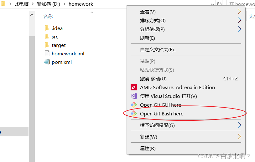 鼠标右键点击空白处,点击Open Git Bash here 打开git CLI
